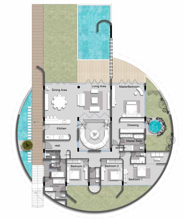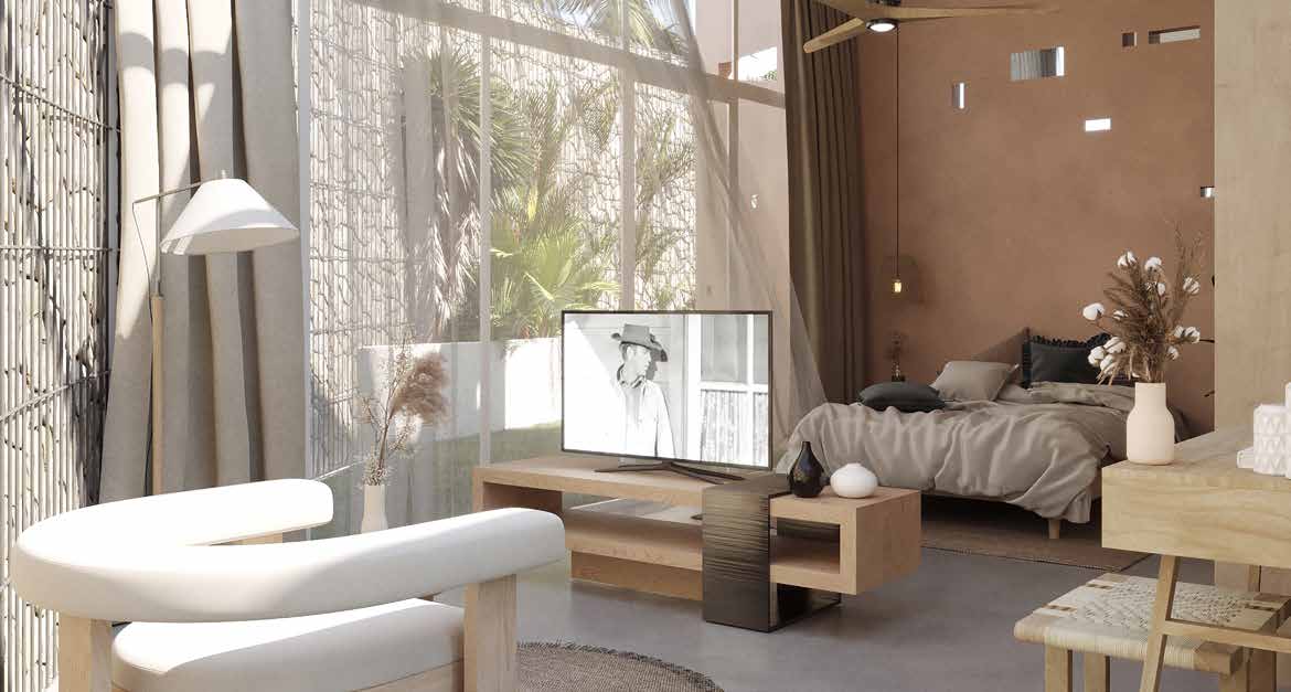 The distinctive topography of Somabay is the best inspiration an architect can ever find. The architecture at Wadi Soma flawlessly mimics and blends into this very special location.The signature lodges are inspired by the sharp prism silhouette of Safaga Mountain whilst the stunning courtyards are inspired by the scattered rock formations in the Soma Desert. The front villas are embedded into the rocks just as the coves are distinctive to this peninsula beach. As the architects of Wadi Soma, we tried to be part of this nature through the geometry, materials, and colors. We wanted to create a project worthy of this holistic site.